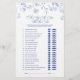 Blue Floral Ele Disse Que Ela Disse Cartão De Jogo Traga risos e diversão para sua celebração com este cartão azul floral "Ele disse que ela disse - quem foi o primeiro". Os convidados circulam suas respostas para adivinhar quem disse ou fez cada marco primeiro, desde o primeiro beijo até as noites de planejamento. Decorado com elegantes ilustrações florais azuis desenhadas à mão e ícones correspondentes, este design adiciona um toque de charme de eterno a casamentos, chás de panela ou festas de noivado. Um perfeito quebrador de gelo e guarde o casal feliz. Copyright Anastasia Surridge, todos os direitos reservados.