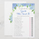 Este jogo de chá de panela é um jogo que ele disse, ela disse adivinhem quem disse. Apresenta um design floral azul de hidrocasta azul. Você pode personalizar o texto com suas próprias perguntas. Fornecimentos correspondentes de chá de panela disponíveis.
