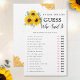 Este jogo de chá de panela é um jogo que ele disse, ela disse adivinhem quem disse. Apresenta girassóis de cor aquosa, folhas de eucalipto, abelhas e favos de mel. Personalize a parte de trás do cartão com o nome da noiva. Produtos correspondentes disponíveis.