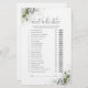 Eucalyptus Greenery "Quem Foi Primeiro" Disse Que Ela Disse Que O Jogo Do Chá de panela "Quem Foi Primeiro" Disse Que Ela Disse Que O Cartão De Jogo Mistura romance mole Com elegância botânica, apresentando folhas de cor aquosa eucalipto e verde sutil em sábado e tons prateados empoeirados. Os convidados podem circundar os lábios verdes pálidos ou os ícones clássicos do bigode de cinzas para adivinhar qual parceiro era o "primeiro" em uma variedade de marcos divertidos e sentimentais. Perfeito para casamentos de jardim, chás de panela rústicos ou celebrações inspiradas na natureza. Copyright Anastasia Surridge, todos os direitos reservados.