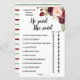 Ele disse que ela disse o jogo de Chá de panela Floral de Marsala. Mude o texto para design. Para personalização adicional (cor da fonte, estilo da fonte ), clique em personalizar, role para baixo e clique no link "Editar usando a ferramenta Design". ** Verifique a coleção para todos os designs correspondentes ** HOW TO PLAY: Os convidados adivinham se a noiva ou o noivo disseram as frases listadas verificando a resposta nas ilustrações do lado direito (noiva ou noivo). A pessoa com as respostas mais corretas ganha