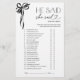 Celebrar os caprichos, o romance, e pequenas surpresas que tornam a história de amor de um casal única com este jogo de Ele Disse, Ela Disse. Projetada tendo em mente a elegância do eterno, esta atividade interativa convida os convidados a adivinhar quem disse o quê — criando uma mistura deliciosa de nostalgia, diversão e um toque de competição amigável. A fita preta clássica e a tipografia polida garantem que até os momentos mais lúdicos se sintam refinados e belamente curados. Um acréscimo ideal a chás de panela, festas de noivado ou jantadas de ensaio, esse jogo combina risos com narrativas, aproximando os convidados do casal de uma forma que se sente íntima e celebratória. Quer você esteja planejando um brunch chic, uma sujeira glamourosa, ou um chá elegante à tarde, esta peça ajustado perfeitamente em qualquer cenário de evento. Procurando designs coordenados, textos personalizados ou uma paleta de cores exclusiva? O designer está disponível para dar vida à sua visão com detalhes personalizados que elevam a sua celebração. Copyright Anastasia Surridge, todos os direitos reservados.