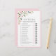 Blush Pink & Floral "Who was First" , Ele Disse Que Ela Disse Que Os Chás de panela De Jogo Deliciosos Com Um Momento Divertido E Interativo Usando O Rosa Esbranquiçado E Floral "Who was First" Ele Disse Que Ela Disse O Cartão De Jogo. Enquadrado por bordas suaves e enfeitado com flores de aquarela em pinks, cremes e verdes pastéis, este jogo elegante convida amigos e família a adivinhar qual parceiro foi o "primeiro" em marcos charmosos de relacionamento. Os convidados circulam os lábios cor-de-rosa ou os bigodes das cinzas para gravar suas respostas, fazer uma mistura perfeita de competição e riso. Copyright Anastasia Surridge, todos os direitos reservados.