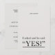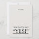 Um belo, elegante e moderno convite de festas de noivado com uma simples frase de texto e o importante "Sim!"