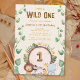 Prepare-se para um bom momento com este convite de aniversário selvagem. Apresentando uma cena divertida da selva, esta adorável design mostra um leão, zebra, girafa e hipopótamo reunidos em torno de um tronco de madeira rústico com o número 1 no centro. Folhas verdes claras enquadram as bordas, acrescentando um toque de aventura à celebração. Perfeito para o grande dia do seu explorador, este convite dá o tom para uma festa de safari cheia de diversão. Personalize com os detalhes do evento e deixe a diversão selvagem começar.