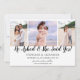 Deixe seus amigos e familiares saberem para Salvar a Data com este anúncio de noivado que apresenta 3 fotos na frente e personalizado com seu texto personalizado. A parte de trás apresenta uma única foto.
