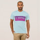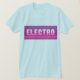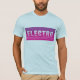 A electro camisa da música de EDM no roxo e o rosa projetam. Mostrado em um modelo azul, mas olha grande em toda a cor do roupa leve ou escuro.