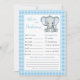 Padrão de estrelas brancas azuis, conselho de bebê elefante e cartão de previsão. Adicione suas previsões sobre o novo bebê e deixe seus melhores desejos.