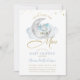 Elefante Azul Sobre o Convite à Chá de fraldas da Lua Simples estamos sobre o convite para o chá de fraldas da lua com um elefante de cor d'água, nuvem e algum texto falso em folha de ouro claro e textura de ressonância em fundo branco. Este convite para o chá de fraldas de elefantes é uma maneira fofa de convidar convidados para o chá de fraldas temático da lua de um bebê.