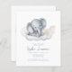 Procurando um convite de chá de bebê encantador? Nosso delicioso design apresenta um adorável elefante bebê sentado em uma nuvem sonhadora, cercado por um céu noturno cativante com estrelas cintilantes. É uma escolha ideal para convidar os entes queridos para celebrar a chegada iminente do seu pequeno pacote de alegria. Personalize o convite com os detalhes do seu evento e faça dele uma lembrança única. Prepare-se para um chá de bebê inesquecível repleto de afeto e felicidade!