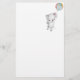 Os artigos de papelaria os mais bonitos nunca com um vôo bonito super do elefante do bebê com um balão colorido. Uma imagem bonita para suas mensagens… De minhas aguarela e tinta originais da pintura no papel.