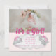 Um anúncio de nascimento de uma menina bonita, foto de "é uma garota". Isto é tão fofo com o elefante da aquarela e a menina rosa macia.