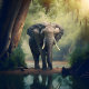 Elefante na Quebra-cabeça de Wild Jigsen. Este design gráfico de um belo animal selvagem, um elefante, parado no ambiente da selva das nossas naturezas.