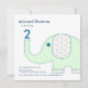 Esta design limpa e moderna apresenta a ilustração do meu bebê elefante com um esquema de cores suave e lúdico. O convite mede 5,25 quadrado e é emparelhado com envelopes brancos.