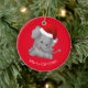 Enfeites de natal mostrado em forma redonda com fundo vermelho e um impressão de elefante papai noel de feriado bonito. Personalize este item ou comprar como está.