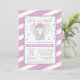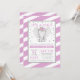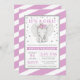 É uma garota! Estes adoráveis convites para bebês elefantes são modestos e bonitos. Este design apresenta faixas diagonais roxas, pontos falsos de brilho prateado e ilustração de elefante. Os designs são ilustrações/gráficos impressos planos - NÃO O GLITTER REAL.