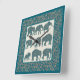 Um divertido Relógio de Parede Quadrado, com silhuetas de Elefantes, preenchido com um padrão Paisley azul escuro e burgundy, em um fundo bege, rodeado por uma Borda Paisley. Parte da coleção 'Heffalumps' da Posh & Painterly.