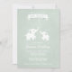 Um elefante-mãe e bebê são super fofos em branco contra um fundo verde-menta texturizado. O grande elefante tem um chá de água e corações vindo de seu porta-malas para um chá de fraldas! Perfeito para um chá de fraldas moderno e neutro. Você pode até mudar a cor do plano de fundo para o que quiser, clicando no botão "Personalizar!".