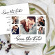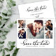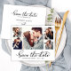 Um Simples Casamento De Colagem De 3 Fotografias De Script Elegante De Orçamento Salva As Cartões De Data Em Preto E Branco. Esta delicada design é feita precisamente para casamentos contemporâneos, exuberando um encantador apelo romântico. Com uma colagem de 5 fontes de grade de fotos bem arrumada e cativando a letra da cauda do swash com letras manuais, essas cartas capturam a essência da elegância contemporânea. Personalize facilmente cada cartão para refletir seu estilo único, incorporando detalhes e fotos de casamento queridos, oferecendo um meio refinado e sofisticado para anunciar e celebrar seu dia extraordinário.