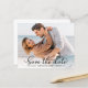 Casamento De Foto De Script Elegante De Na moda Elegante De Orçamento Salve As Cartões De Data. Apresenta uma foto de cheio e uma caligrafia elegante de camada de fotos, escrita com letra maiúscula, com letra maiúscula, em preto clássico e branco, que captura a essência da elegância contemporânea. Personalize facilmente cada cartão, incorporando detalhes de casamento queridos e uma fotografia, oferecendo um meio refinado e sofisticado para anunciar e celebrar o seu dia extraordinário.