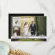 Um design elegante que apresenta uma foto completa dos noivos e duas fotos inseridas na frente com um espaço para sua mensagem personalizada de agradecimento no verso. O estilo elegante em preto e branco é atemporal e clássico.