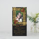 elegância de ouro cartões de foto de Natal. Fitas de ouro e ornamentos brilhantes sobre fundo preto. O texto é totalmente personalizável. Adicione suas informações ou altere-as completamente.