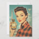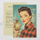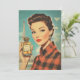 Um glamouroso poster vintage dos anos 50 com uma sofisticada mulher na xadrez vermelha segurando uma garrafa de perfume luxuosa chamada "PERFUME". A Torre Eiffel sobe ao fundo, melhorando a estética parisiense cômica com cores ousadas, moda retrógrada e beleza clássica.