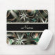 Personalize este tapete do rato com seu nome ou o outro texto. Características de design um design floral da arte do fractal com branco, pêssego, cerceta, e cores pretas.