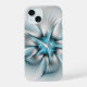 Flor de fantasia elegante com efeito 3D. Cores de pasta azul e cinza. Design para seu gabinete iPhone 15 e muito mais.
