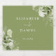 Elegante design de casamento verde musgo com vegetação floral personalizado com seus nomes e data especial de casamento. Criado por Thisisnotme©