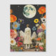 Entra num mundo de charme vintage com este design sereno com a vista de trás de uma mulher contra o brilho luminoso de uma lua de crescente ou cheio. Os tons suaves e nostálgicos parecem evocar a beleza do eterno e a introspecção silenciosa, fazer-a uma peça perfeita para amantes da arte clássica e designs inspirados no celeste.