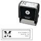 Carimbo de endereço de retorno de retângulo moderno, mas elegante, com monograma personalizado à esquerda em sans serif font com nome cruzado sobre ele e um endereço de retorno alinhado no lado direito