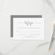 Estes cartões elegantes de resposta ao casamento apresentam uma tipografia de cinza moderna em um fundo branco, para uma aparência sem esforço de na moda.