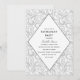 Este design simples, porém elegante, apresenta um padrão de espiral floral de cinza clara no fundo com detalhes da festa dentro de um design de diamante moderno. Todos os campos de texto são personalizáveis.