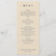 This elegant wedding menu features a clean, vertically oriented layout with ample white space on a soft beige background. The classic serif typography adds sophistication, while dotted lines separate sections labeled in uppercase for clarity. Each dish is presented in an italicized font, enhancing readability and style. Customizable placeholders at the bottom allow for personalization, making this design perfect for creating a timeless and refined dining experience at your special event.