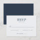 This wedding RSVP card features a minimalist and elegant design with ample white space, creating a clean and sophisticated appearance. The layout includes bold uppercase serif typography for the "RSVP" header, complemented by simple sans-serif fonts for clear communication of response options. A cursive script placeholder adds a personal touch, while the overall black text on a light gray background ensures high contrast and readability. Ideal for formal events, this card balances aesthetics with functionality, making it both visually appealing and easy to navigate for guests.