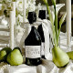 A sophisticated black and white champagne label featuring elegant serif typography and delicate calligraphy accents.