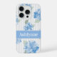 Elegant Blue Hydrangea Sage Green Gray Stripe Name iPhone 15 Pro Case Bring the timeless elegance of a coastal summer into your everyday routine with this delicate hand created art of hydrangea floral with sage green leaves overlaid on a classic gray ticking stripe. Perfectly blending high-end garden aesthetics with a breezy East Coast vibe, this case offers a sophisticated touch to your phone. Customize with a name for a perfect gift! Choose your phone type. Contact the designer with any customization questions. Hydrangea design is original to Cross Fox Design.