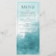 This elegant wedding menu features a vertical layout with a serene gradient of soft blue hues, creating a calm and inviting atmosphere. The design employs a clean, minimalist aesthetic with ample negative space around the text blocks, enhancing legibility and balance. Serif and sans-serif fonts are used to differentiate headings and body text, adding visual interest while maintaining coherence. Perfect for formal events, this template offers customizable sections for starters, salad, main course, and dessert, ensuring clarity and style throughout your celebration.