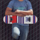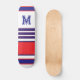 Elegant blue red white stripes monogram skateboard