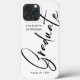 Elegant Calligraphy Script Graduation Graduate Phone Cases features a swirly modern black calligraphy script overlay "Graduate" in modern typography. Personalized with your name and class of details by editing the text in the text boxes provided. Simple, stylish and classy graduation keepsake gifts. Created by ©Evco Studio www.zazzle.com/store/evcostudio