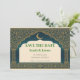 Announce your wedding day with this stunning Save the Date card. Featuring a deep emerald teal background and a sophisticated gold ornate arch with subtle celestial accents. This modern-vintage design is the perfect first glimpse into your elegant wedding celebration. High-quality print with a luxurious feel.