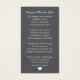 Honor a loved one with this simple and elegant grey memorial card. The front features the text “In Loving Memory” in white with space for a cherished photo, your loved one’s name, and birth and passing dates. The back includes a heartfelt prayer titled “Always Beside You” in a white font and on a gray background.