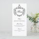 Add a refined touch to your reception tables with this elegant wedding menu card featuring a classic crest design. The ornate decorative frame creates a sophisticated focal point while the graceful “Menu” headline and structured layout present each course with timeless style.