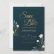 Elegant Navy Blue Gold Floral Save the Date Card