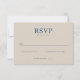 This elegant wedding RSVP card features a minimalist design with a beige background and navy blue text, creating a sophisticated contrast. The layout is clean and organized, with bold serif typography for the "RSVP" heading and lighter serif fonts for response options, ensuring clarity and readability. The customizable space allows guests to indicate their attendance or decline gracefully, making it perfect for formal events. Its simple yet refined aesthetic conveys an air of elegance and simplicity, ideal for couples seeking a classic and timeless look for their wedding stationery.