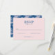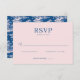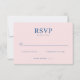 This is a minimalist style image featuring an elegant RSVP card with soft pink and navy blue tones. The design is simple yet sophisticated, perfect for formal events like weddings or galas. The clean lines and graceful script invite guests to respond joyfully or regretfully, adding a touch of class to the invitation process. It evokes feelings of anticipation and formality, making it ideal for creating a refined atmosphere.