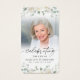 Celebrate the life of your loved one with this custom personalized prayer card featuring one cherished photo, the title CELEBRATING THE LIFE OF NAME and dates and an editable heartfelt remembrance message you can change to your custom text, a meaningful poem, quote or bible verse accented with soft watercolor white flowers and greenery. With its simple yet classic design and elegant script typography, it makes a thoughtful keepsake to share at a Celebration of Life, funeral, memorial service, visitation or wake and offers comfort and a lasting tribute for family and friends. Its small and portable size of 3.5x2" (wallet-sized) makes it convenient for loved ones to carry it with them as a reminder of your loved one’s life and spirit. Personalization makes each card unique.