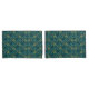 Seamless floral pattern with yellow and teal flowers and green leaves on a dark background. The design is symmetrical and evokes a lively, elegant feel.