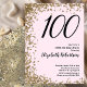 Este bonito e elegante convite de 100 anos é perfeito para uma bela festa e dará um tom elegante e comemorativo. Nota: A folha de alumínio é impressa e não é realmente brilhante! Este design apresenta um padrão impresso em ouro, rosa e preto, e é uma boa escolha minimalista para um evento especial para celebrar um aniversário de marco.